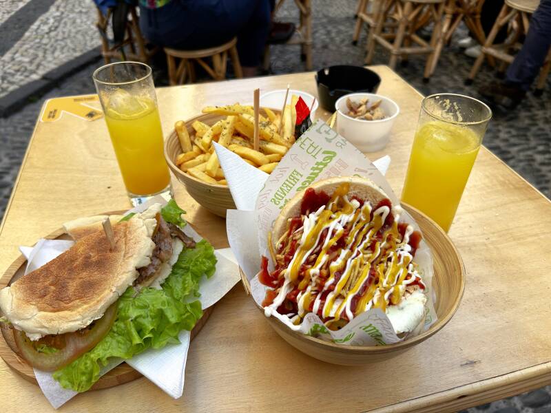 Rei Da Poncha is een erg populair café en in het hoogseizoen staat hier na 17:00 vaak een rij om een tafeltje te bemachtigen. Wij hadden nu al wachttijd. Houd er rekening mee dat je hier alleen cash kunt betalen. Cheers!