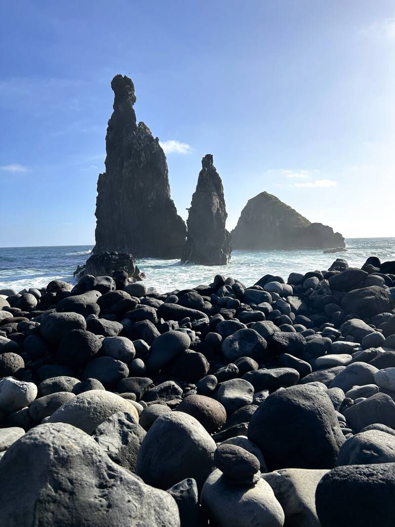 Verstopt tussen de plaatsjes Seixal en Porto Moniz bezoeken wij voor de kust een bijzondere rotsformatie in de zee. Hier steken enorme rotsen kaarsrecht uit het water: Ilhéus da Ribeira da Janela. Een mooie stop als je in de buurt bent!