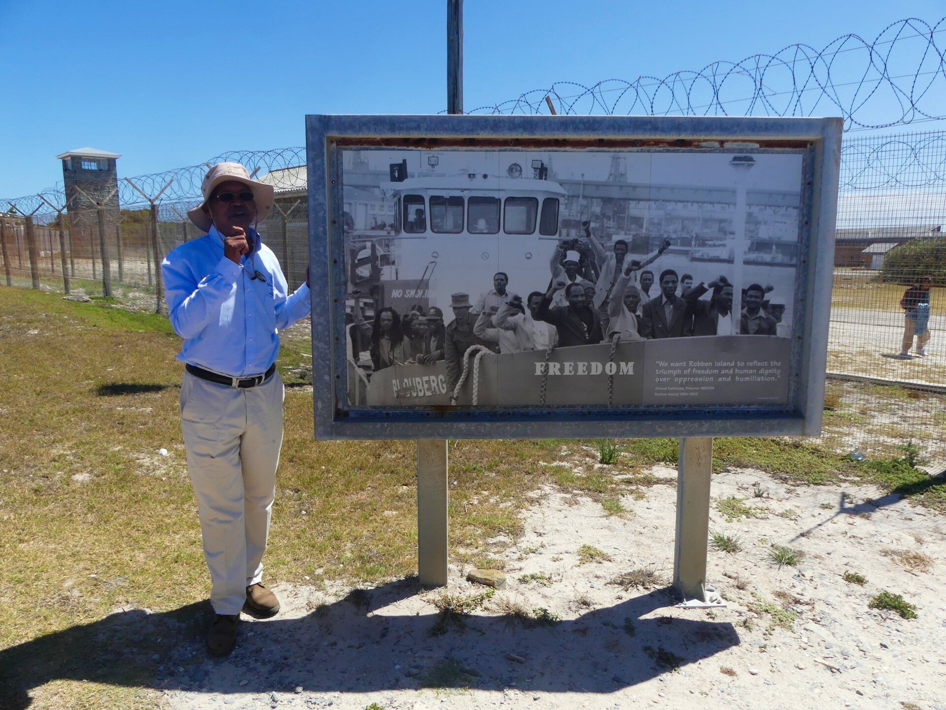Op onderstaande foto een boom die op binnenplaats van de gevangenis staat. Dit is de plek waar Nelson Mandela zijn brieven in de grond had bewaard, die later door iemand anders werd gesmokkeld naar buiten. Deze brieven werden later het boek van Nelson Mandela 'brieven uit de gevangenis' .