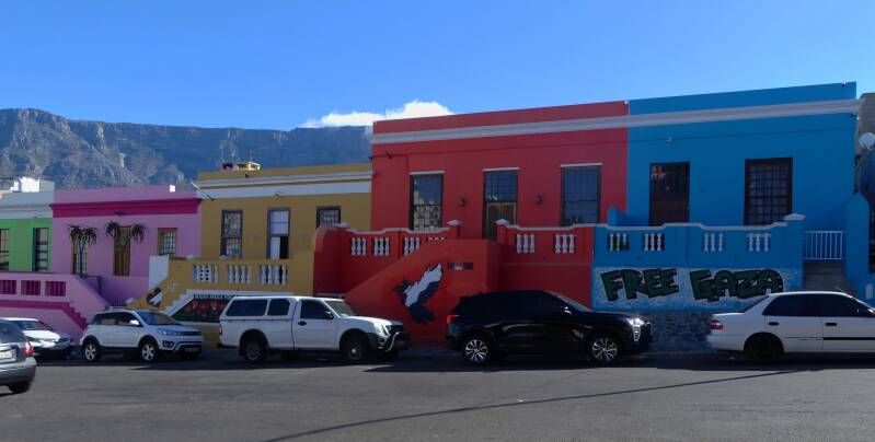 In Bo-Kaap tref je vrolijk gekleurde huizen aan. Dit is de wijk waar elke straat een kunstwerk op zich is. De verdrietige geschiedenis stamt nog af van de voormalige slaven uit de 18e eeuw, die door de Nederlandse VOC vanuit Azië werden gebracht. Omdat kleurrijke kleding verboden was, gaven de inwoners hun huizen na de afschaffing van de slavernij vrolijke kleuren, wat resulteerde in een wijk met alle kleuren van de regenboog.