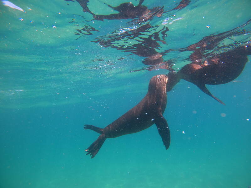 En voor die zeehonden komen we vandaag. Een van de must do’s in Plettenbergbaai is namelijk het snorkelen met zeehonden. Deze zeehonden zijn super nieuwsgierig als je het water in springt en komen enthousiast een kijkje bij je nemen.
