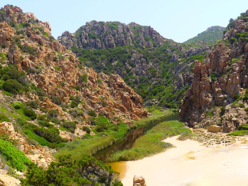 Costa Paradiso, gelegen aan de noordkust van Sardinië, staat bekend om zijn ruige kliffen, kristalheldere wateren en prachtige, kleine zandbaaien. Maar ook: Een geurig mediterraan struikgewas, rode granieten rotsen die bizar zijn gevormd door wind en weer en fascinerende rotsformaties.