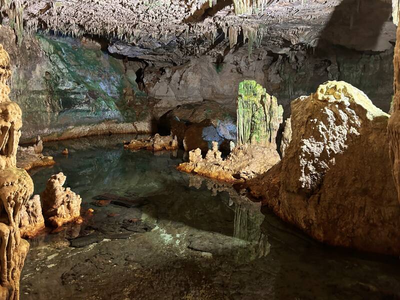 Eenmaal in de grot zie je overal waar je kijkt, de stalagmieten en stalactieten in de meest vreemde en bijzondere vormen. Af en toe hoor je een druppel water vallen en je ruikt het steen overal waar je bent. De grotten zijn niet alleen beroemd om de druipstenen, maar ook om La Marmora, het ondergrondse meer. Een bijzondere ervaring om dit te bezoeken, De grotten zijn ruim 4 km lang, maar alleen het begingedeelte is toegankelijk voor bezoekers.