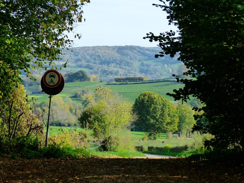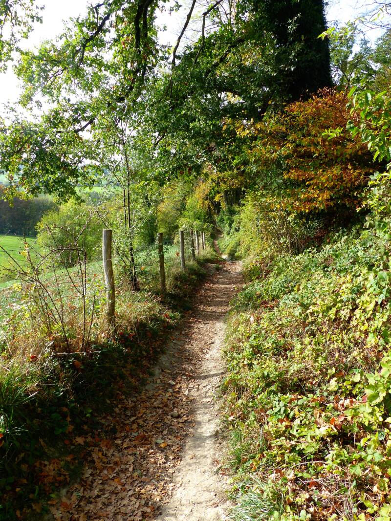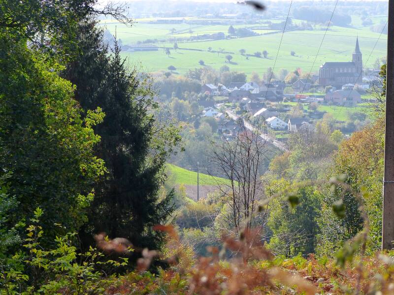 Hoog boven Teuven passeren we een grenspaal. Even verder volgen wij een steil bospad omlaag en rollen wij zowat de Gulp in. Het uitstapje over de grens is van korte duur. Als we eenmaal weer in eigen land zijn volgen we de onverharde Maastrichterweg richting Schilberg. De prachtige weg slingert licht omhoog, met de kerktoren van Slenaken rechts in de diepte. We lopen het toeristische dorp voorbij om als slot van de wandeling de mooie weidepaden langs de Gulp te kunnen bewandelen.