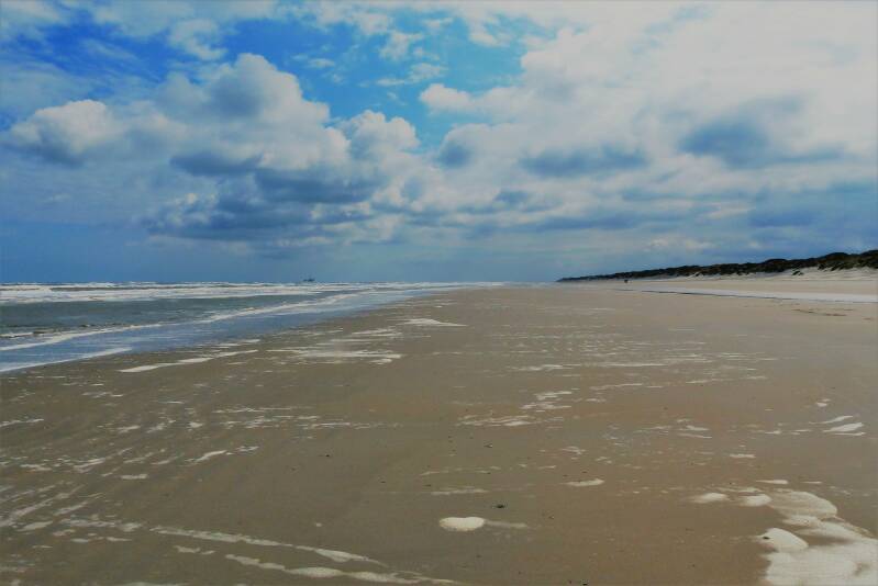 Als we het strand opkomen worden we begroet door de zon. We wandelen ongeveer 5 KM langst het strand van de Noordzee. Het is rustig, af en toe mede wandelaars, soms een paardrijder....maar het strand is leeg. Links van ons de zee, rechts van ons de duinen. Eindeloos wandelen en genieten.