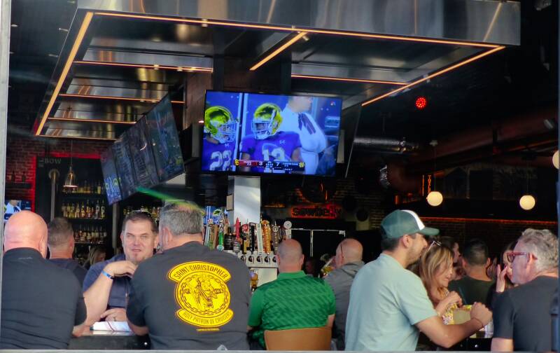 Als wij op zondagmiddag in Gaslamp Quarter belanden, zoeken we een leuk café op. Het café zit vol met mensen, maar hangt ook vol met TV's. Allerlei sportwedstrijden worden tegelijkertijd uitgezonden. American football wordt het meest intensief beleeld in het café. De supporters gaan er af en toe flink op los.