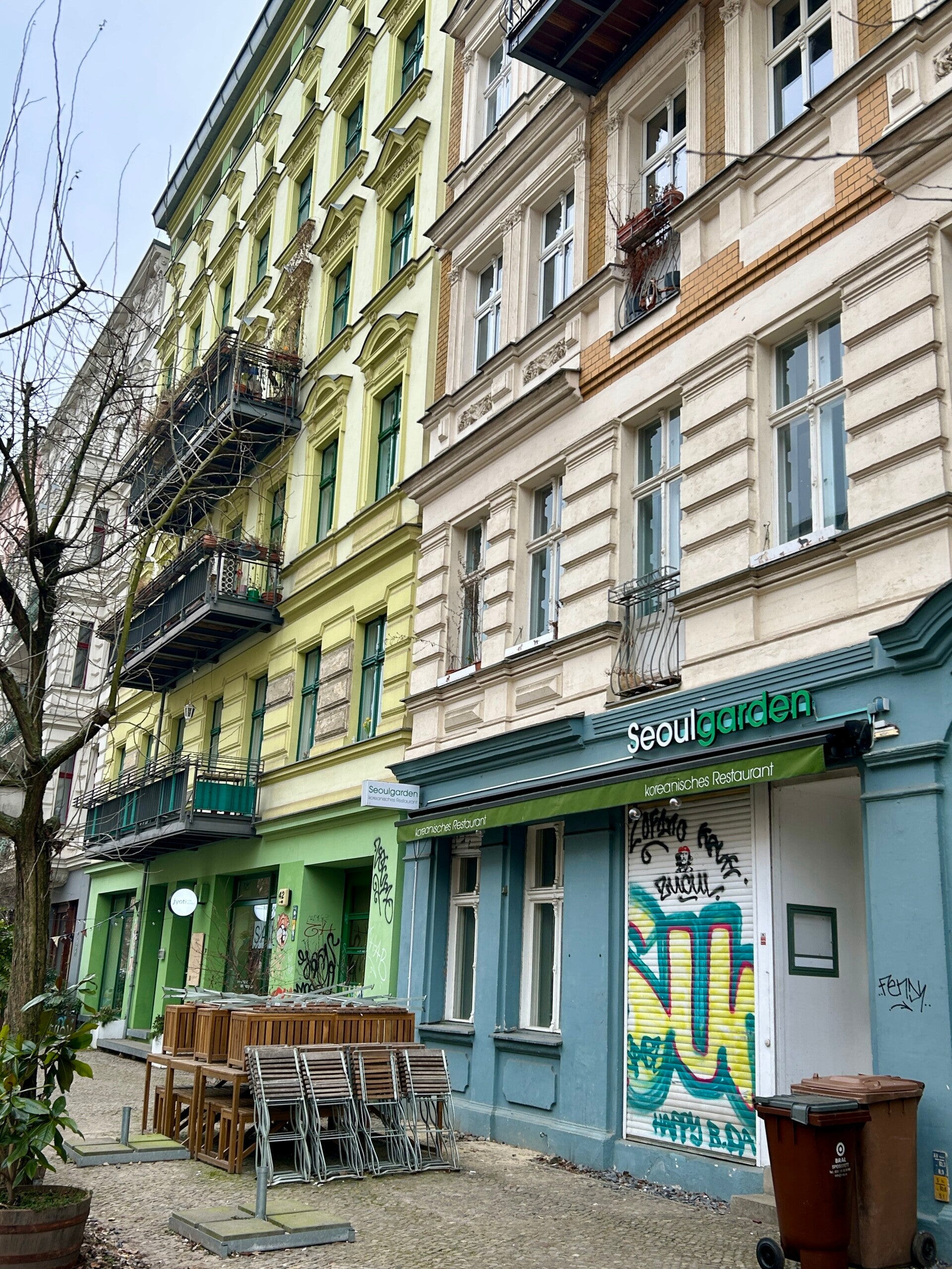 Dan komen we aan in de Kollwitzstrasse. Dit is een levendige straten van de Prenzlauer Berg. Het is in de zomer een groene straat en staat vol met winkels en restaurants. Ook het het Kollwitzplatz is hier gelegen. Er staan mooie oude huizen rond de Kollwitsplatz. Dit is een populaire ontmoetingsplek van de buurtbewoners.