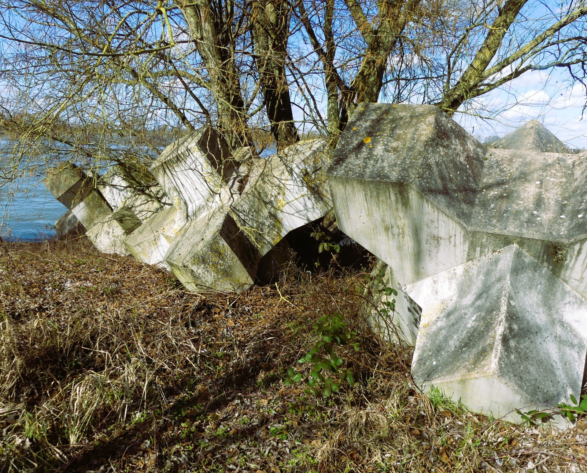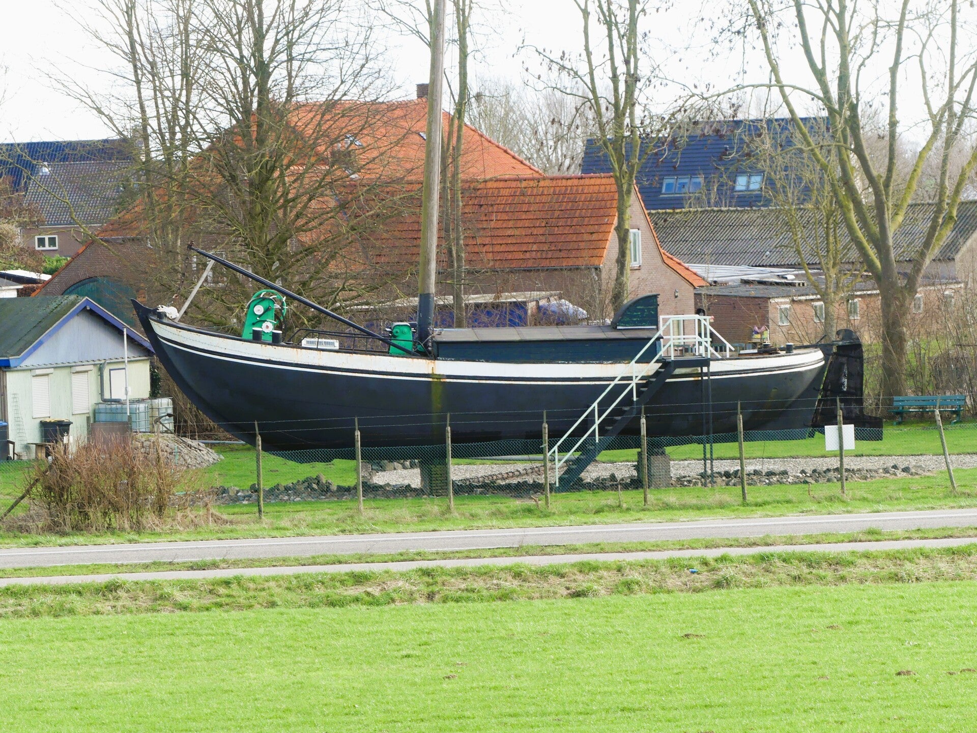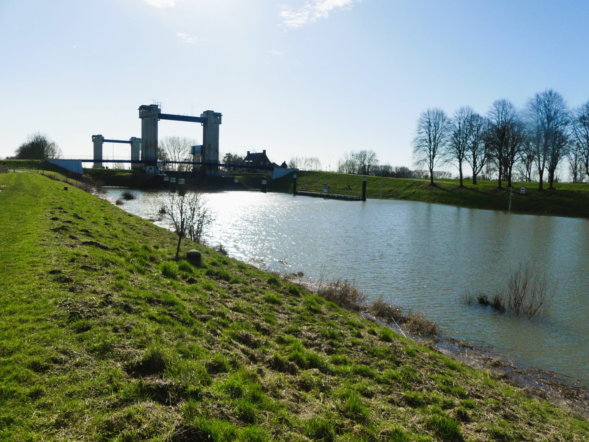 Vanaf het fort lopen we richting het Kanaal van Sint Andries, een korte maar historische verbinding tussen Maas en Waal. Het kanaal werd al in 1599 gegraven, tegelijk met het oude fort, en diende als strategische waterweg. Later, in 1856, werd het afgesloten met een schutsluis om het peilverschil tussen de rivieren te beheersen. Het huidige kanaal dateert uit de jaren ’30 van de twintigste eeuw, toen de Maas werd gekanaliseerd.