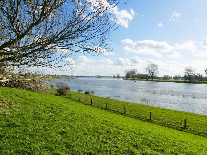 Heerewaarden zelf ligt op een natuurlijke stroomrug, een hogere zandige ondergrond die het dorp eeuwenlang bescherming bood. Daardoor overstroomt het dorp zelf zelden. Maar omdat het ingeklemd ligt tussen twee grote rivieren, stonden de dijken regelmatig onder extreme druk. Dat leidde tot de bekende evacuaties van 1993 en 1995 — niet omdat het dorp zou overstromen, maar omdat een dijkdoorbraak catastrofaal zou zijn geweest.