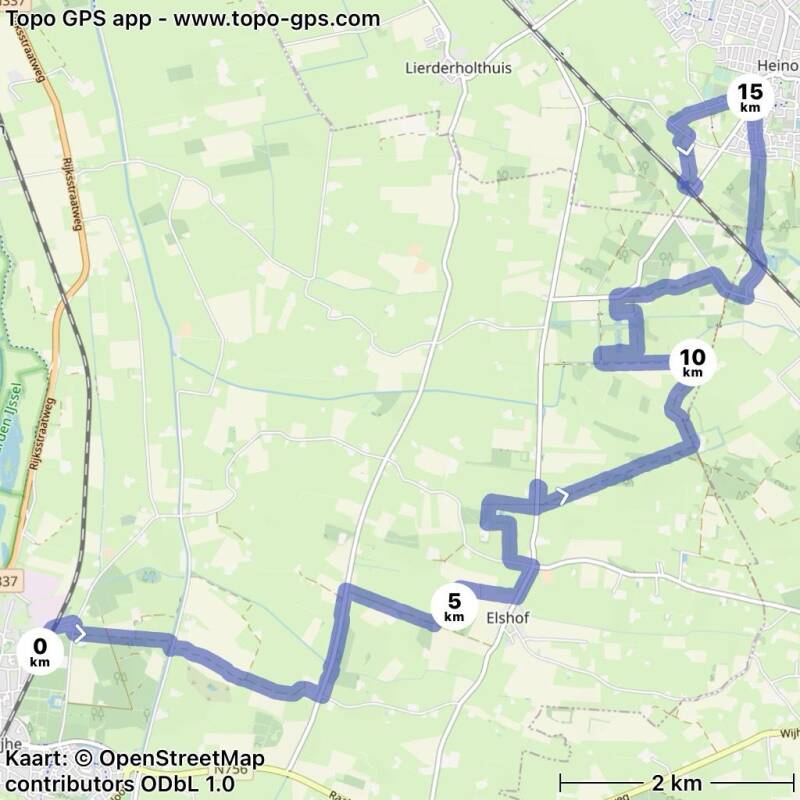 Bij Wijhe lopen we over het landgoed Gelder. Dit is een opengesteld landgoed dat in particulier bezit is. Enkele bijgebouwen, de gracht en de brug zijn nog aanwezig. Verder kenmerkt het landgoed zich door coulissenlandschap met prachtige bossen met talloze rhododendrons.