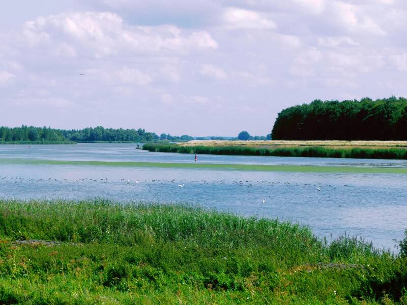 Markant punt van onze reis....twee uitmondingen van de Nederlandse rivier de IJssel in het Ketelmeer. De zuidelijke linker zijarm is het Keteldiep. Het Kattendiep is de noordelijke rechter zijarm. De IJssel gaat hierover in het Katteldiep om via het Ketelmeer in het IJsselmeer te stromen.