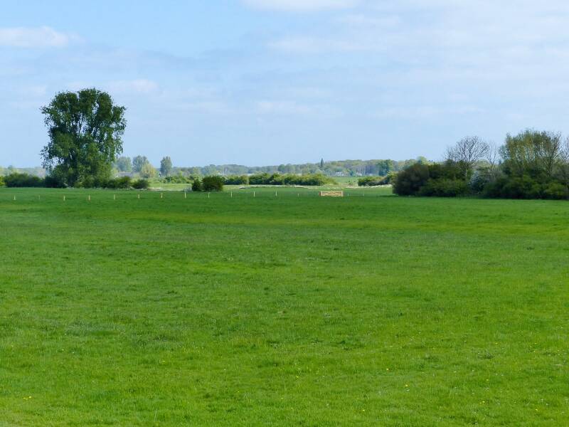 De Rammelwaard, eindeloos genieten van de uiterwaarden. Links akkerland. Rechts de uiterwaarden.