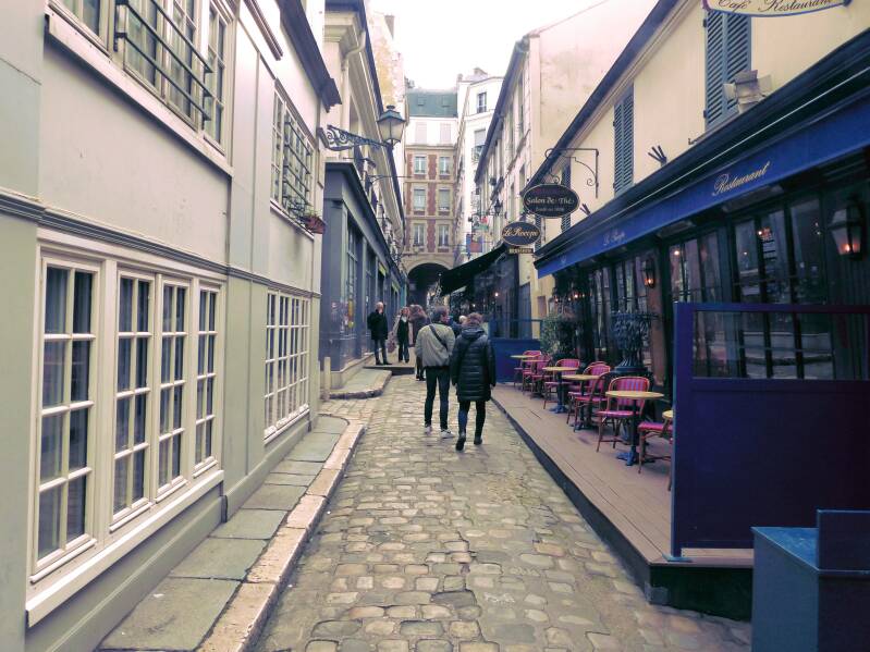 Vervolgens lopen we door Passage Dauphine. Een oude overdekte passage met vijgenbomen. We wandelen door een fraai stukje Parijs. Leuke straten, veel restaurants en cafés. Deze omgeving straalt gezeilligheid uit.