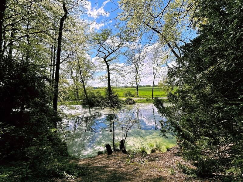 Het volgende hoogtepunt op deze route is het Azalealaantje op het landgoed Duno. We hebben geluk: De azalea's op landgoed Duno staan in bloei. De talloze bloemen zorgen voor een zee aan kleuren. Eigenlijk is het een foutje. Bij de renovatie van het laantje was het de bedoeling om alleen gele azalea's terug te planten. Zo zag de laan er vroeger namelijk ook uit. Door een foutje werden er azalea's geplant in allerlei kleuren.