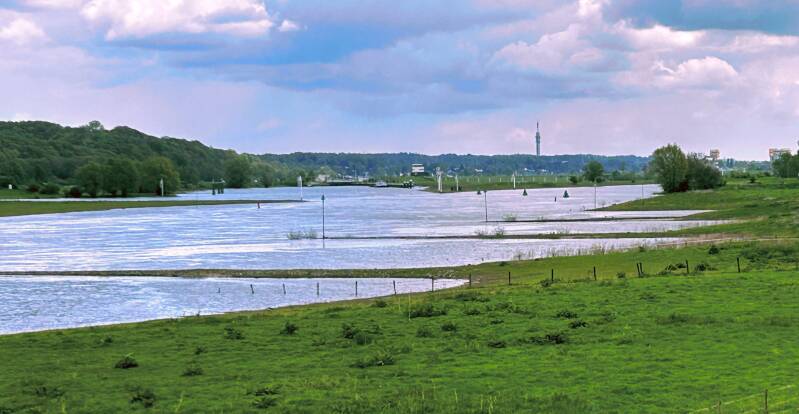 Na het kasteel gaat het in de uiterwaarden richting de Rijnbrug bij Heteren.