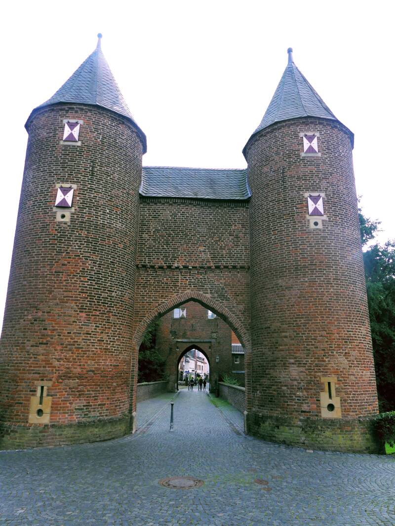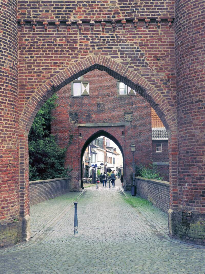 Wij hebben de auto net buiten de stadskern van Xanten geparkeerd. Een korte afstand is het dan naar het beginpunt van de wandeling. Het is prachtig weer op vrijdag 2 augustus 2024, zo ook het begin van deze wandeling. We staan voor de Klever Tor. De Klever Tor is de vesting poort. De Klever Tor en brug leiden ons over de verdwenen verdedigingsgracht de stad in. Er is zelfs een dubbele poort bij deze ingang van de stad. Overigens is het gehele stadje volledig ommuurd.