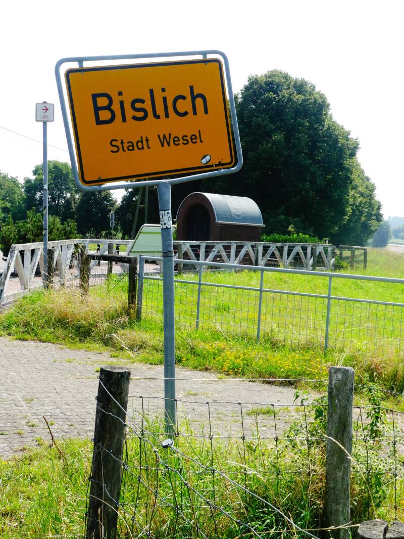 Dan wandelen we door het dorpje Bislich. Bislich omschrijft zich zelf als Dijkdorp. Rond het dorp Bislich zien we vooral agrarische bedrijven. Verder zien we natuurlijk de de Rijn en natuurgebieden. Net als Xanten ligt Bislich in het district van Wesel. Van de vijf districten van Wesel heeft Bislich het grootste oppervlak, maar het laagste aantal inwoners en veruit de laagste bevolkingsdichtheid. Meerdere malen is Bislich getroffen door dijkdoorbraken. Er is een museum in het dorp, dit museum biedt fascinerende inzichten in de plaatselijke en dijkbouwgeschiedenis en in de eeuwenoude traditie van de baksteenproductie. En last but not least is het een informatiecentrum voor het UNESCO Werelderfgoed Nedergermaanse Limes met informatieve inzichten in de Romeinse tijd aan de Germaanse kant.