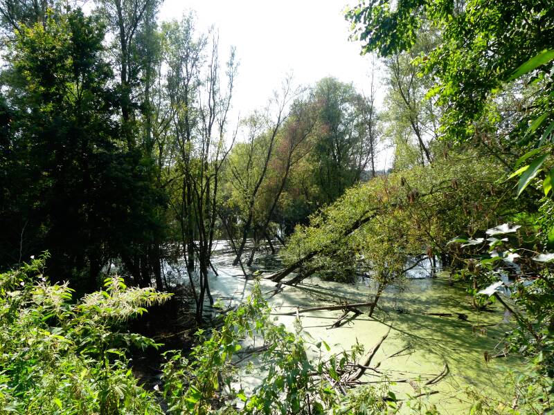 We zien veel vogels. Er zijn plekken gemaakt om ongestoord een blik te werpen op de aanwezige vogels. We zien zelfs (meerdere) schilpadden.