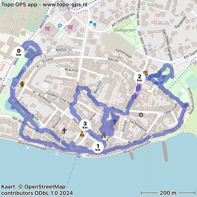 Over de stadsmuur wandelen wij richting de Weiser Turm. Als onderdeel van de oude stadsverdediging werd in 1410 de “Wyskirchenturm” gebouwd als een van de drie torens die op onregelmatige afstanden de stadsmuur flankeerden. Omstreeks 1480 werd de Beschermtoren bij de kikkervijver gebouwd om de stadsversterkingen van Rees te versterken. De toren werd tijdens de oorlog van 1945 zwaar beschadigd; het werd in 1992/93 herbouwd op basis van historisch model. Voorbij de Beschermtoren ligt een oude Joodse begraafplaats: rond 1700 verkocht de stad Rees hiertoe aan de Joodse Gemeenschap een stuk grond óp de stadsmuur om een begraafplaats te stichten die bestand was tegen hoogwater. De plek van deze oude begraafplaats is voor het Rheinland uniek. De toenmalige voorschriften van de lokale overheid hielden in dat Joden buiten de stadsmuren begraven moesten worden, maar dan zouden deze graven worden weggespoeld worden bij hoogwater. Begraven óp de stadsmuur bleek niet in strijd te zijn met de voorschriften.