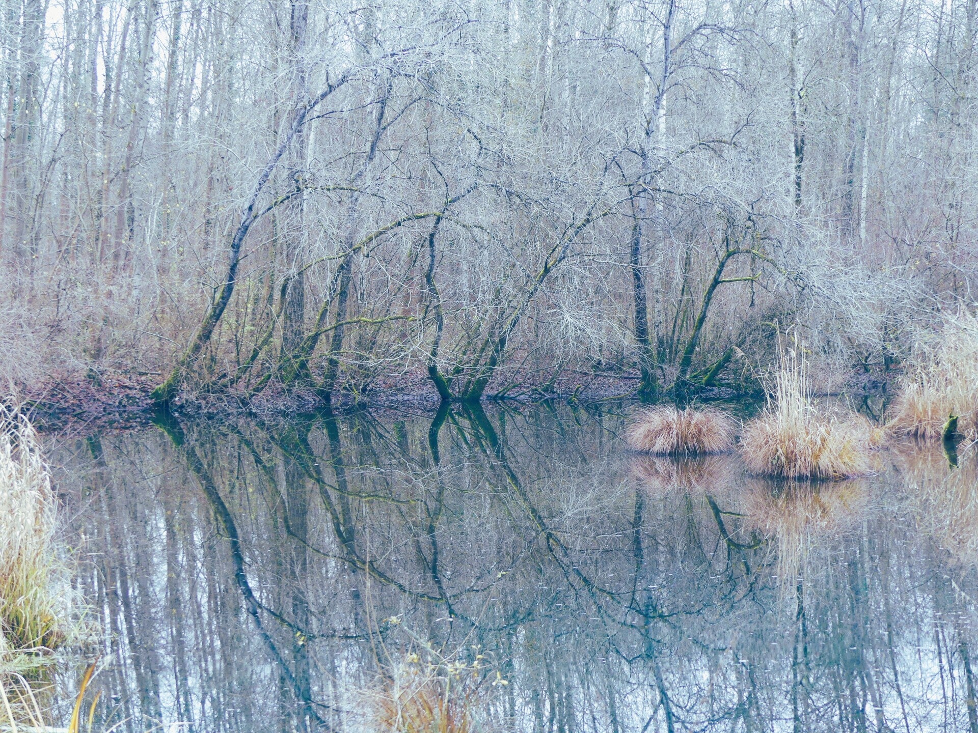 In de zomer kun je met een kano geruisloos glijden door een smalle rivierarm. Wij ontdekken wandelend dit mooie gebied op 4 december 2025. We zien de spiegeling van bomen in het water, vogels vliegen voorbij en zwanen zwemmen in het water. Helaas hebben wij geen waterdichte schoenen bij ons, want sommige stukken in dit gebied moet je door het water wandelend afleggen. We moeten af en toe een andere route kiezen om de voeten droog te houden. De wandeling is een ervaring die ons dichter bij de oeroude adem van de Rijn brengt dan welke kaart of geschiedenisles ook.