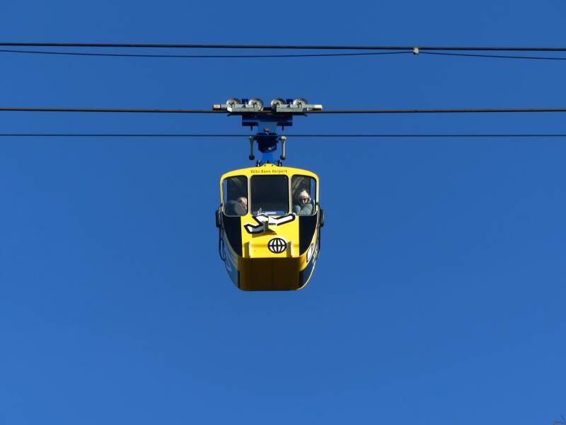 In het parkcafé, een monumentaal pand, drinken we koffie. Met de stoeltjeslift gaan we weer naar de rechterover van de Rijn. We krijgen nog een mooi uitzicht op het Rijnpark, de Rijn en een kleine spoorlijn in het park voor de kinderen.