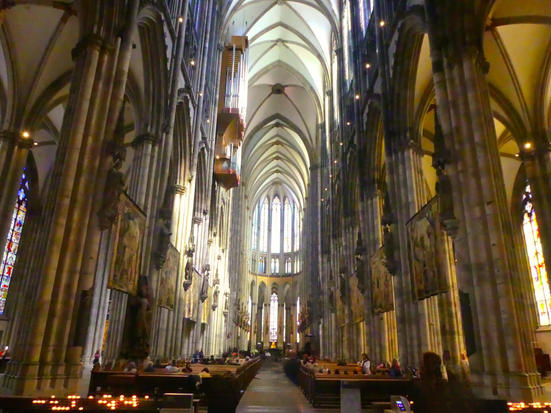 De Dom van Keulen heeft ontelbare pinakels en spitsbogen. De 157 meter hoge torens behoren tot de hoogste van de wereld. De twee torens trekken de aandacht als je voor de Dom staat. Het is een enorm groot gebouw wat op je afkomt. Je kunt het gehele gebouw niet eens op de foto krijgen.