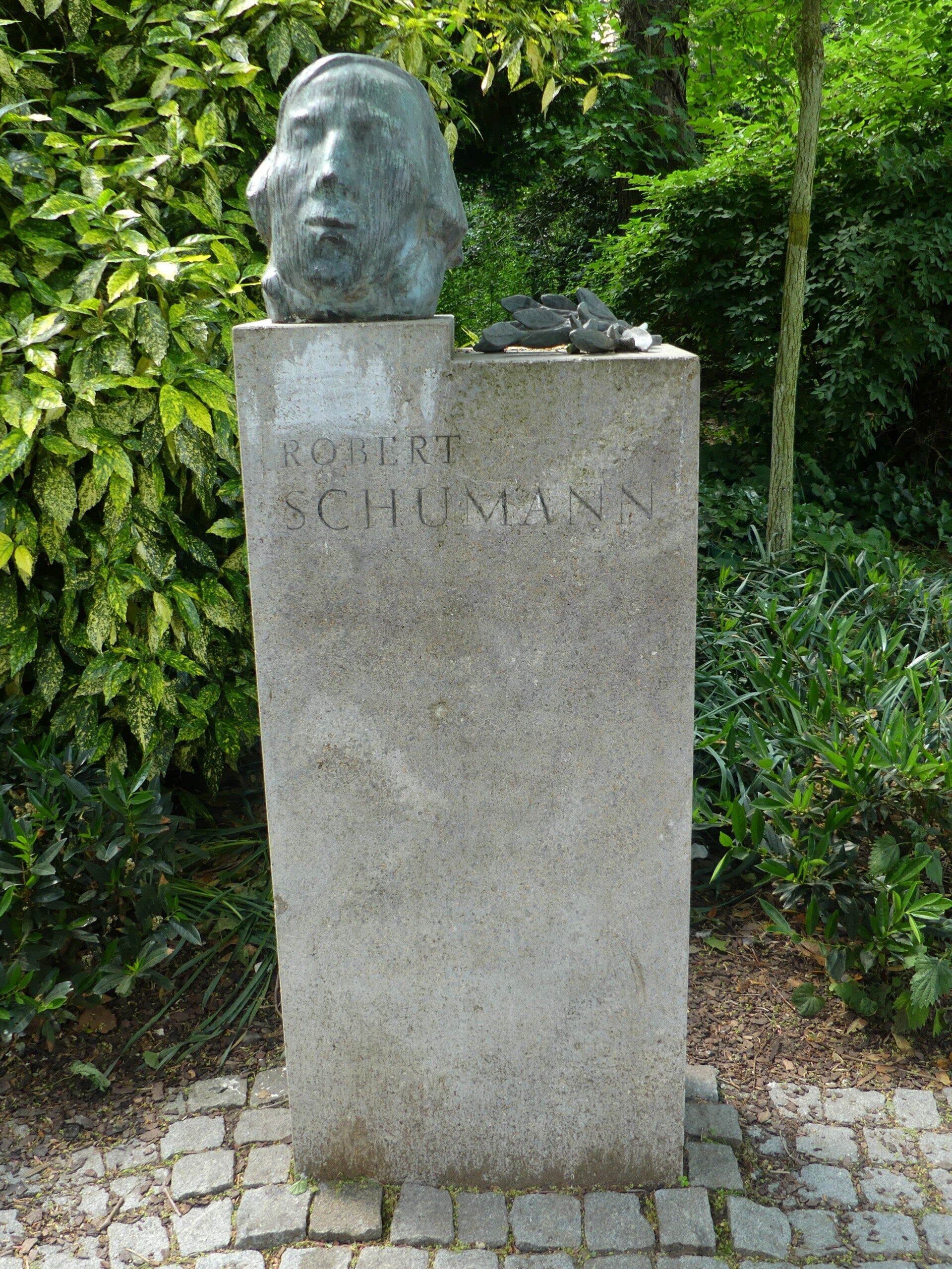 Via de winkelcomplexen rond de Konigsallee komen wij in een schitterend en eeuwenoud stadspark. Dit stadspark heet de Hofgarten. het is een park met veel grasvelden, maar ook eeuwenoude stukjes bos en beukenlanen. Een echt stadspark. Het park is meerdere malen uitgebreid. In het park staan standbeelden. Onder andere het standbeeld van Robert Schuman. In het boek 'De Rijn, een biografie van een rivier' wordt veel aandacht besteed aan Robert Schuman. Robert Schumann was een Duitse componist, pianist, dirigent en invloedrijk muziekcriticus. Hij wordt vaak beschouwd als een van de grootste componisten van de Romantiek. In 1850 werd Schumann stedelijk muziekdirecteur in Düsseldorf. Het lukte Schumann echter niet om zijn musici te motiveren, hij werd ontslagen en het ging bergafwaarts met zijn geestelijke gezondheid. Zo zelfs, dat de manisch-depressieve componist in 1854 tijdens carnaval zijn trouwring in de Rijn gooide, om vervolgens zelf in het ijskoude water te springen. Het was een Nederlandse schipper die hem redde. Het mocht niet baten, na zijn redding verbleef Schumann vrijwillig in een inrichting, waar hij uiteindelijk op 29 juli 1856 overleed