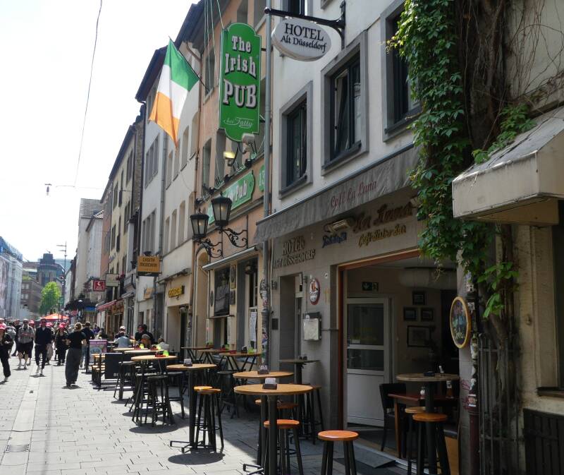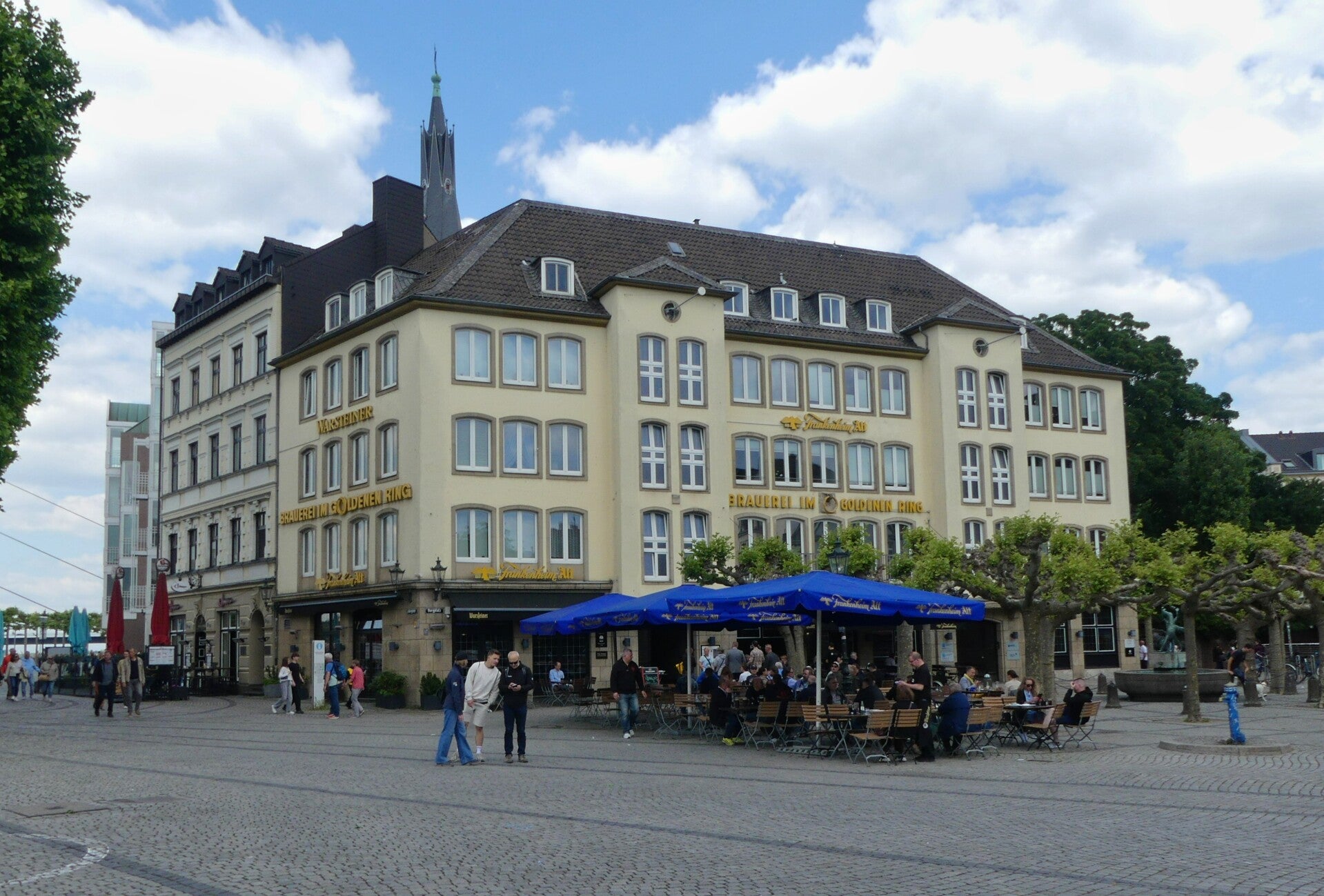 Dan wandelen wij De Altstadt in. De Altstadt is het historisch centrum van Düsseldorf, gelegen aan de Rijn. De Altstad is slechts een halve vierkante kilometer groot, maar het is een trekpleister van jewelste. Het gebied is rijk aan geschiedenis en cultuur vanwege de historische gebouwen, pittoreske straatjes en bezienswaardigheden met een belangrijke betekenis voor de stad. Denk aan de St. Lambertuskerk, waarschijnlijk het oudste gebouw van Düsseldorf met een gedraaide torenspits. Overdag is de Altstadt het domein van shoppers, ’s avonds wordt het een aantrekkelijk uitgaanscentrum.