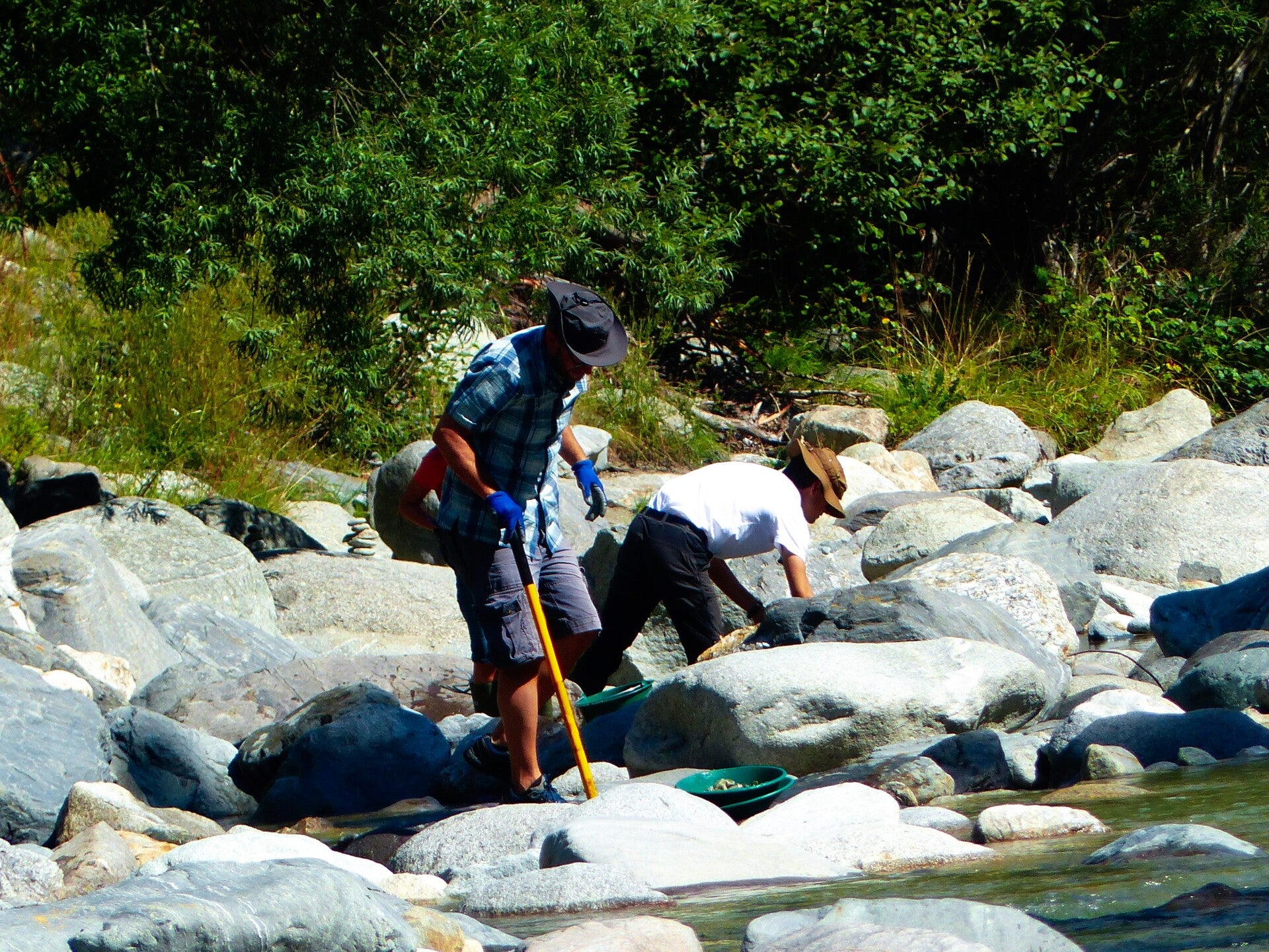 Goud zoeken in de Voor-Rijn is allesbehalve een mythisch verhaal. We noemen de Rijn ook wel een zogenoemde gele rivier. Het Rijngoud was met de botsing van de aardplaneten vanuit de korchten van onze planeet mee opgestuwd. Sindsdien slaat het Rijn het edelmaat uit de rotsen. Om wat preciezer te zijn: Uit gesteenten neemt het water gouddeeltjes mee. Als in de winter het water hoog staat worden die deeltjes met het sediment afgezet achter de strekdam en komen ze op het strand terecht.We wassen het goud. Doordat het 18 keer zwaarder is dan zand zakt het naar de onderkant.