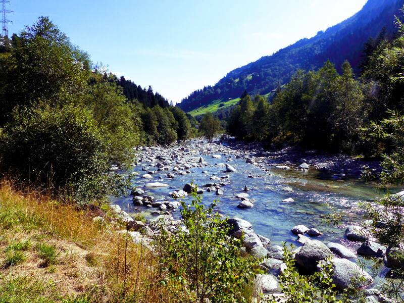 De Rijn heet dan de Voor-Rijn. Voor de bewoners in het dal: de Vorderrhein. Deze kilometers van de Voor-Rijn gaan door een stenen rivierbed: Een chaos van senlstromend water en stenen.