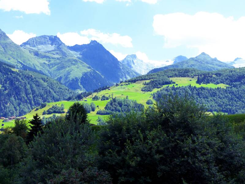 Vervolgens lopen wij Disentis uit. Op de eerste 3 kilometers van deze wandeling is het klimmen. Dat geeft ons wel een prachtig uitzicht op het Vorderrhein dal.