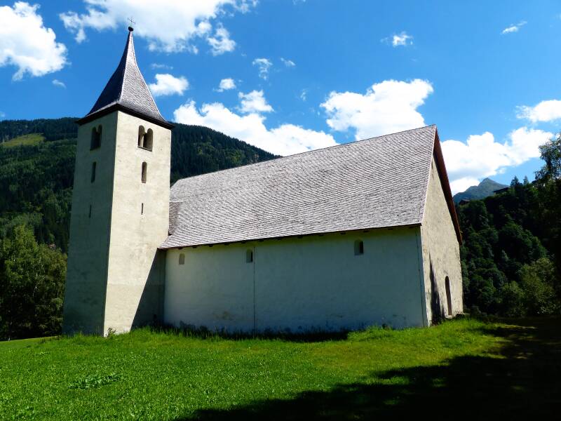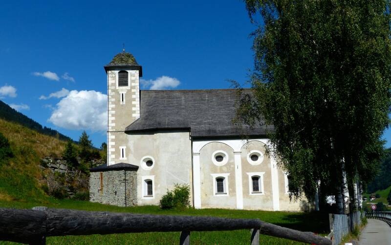 Kapel van St. James in Cuoz is een hele kleine kapel . Het werd gebouwd rond 1600. Als we door de vallei wadelen komen we daarna langs Kerk van St. Agatha/Sontga Gada.