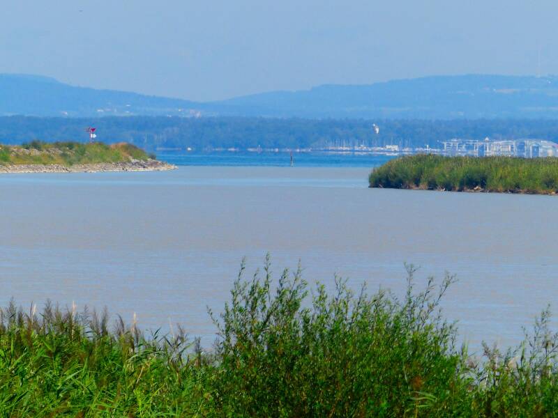 Punt waar de Rijn uitmondt in de Bodensee (foto boven en foto's beneden)