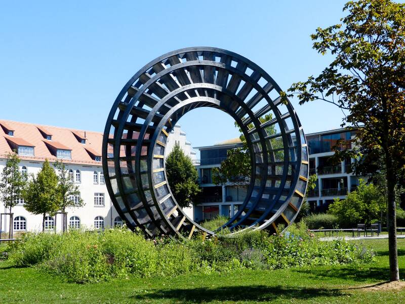 Vervolgens duiken wij de oude binnenstad in. We komen direct in de Maximilianstraße. Deze straat bestaat uit hobbelige kasseien. Deze keien zijn bewaard gebleven uit de middeleeuwen. Je moet opzij kijken als je op straat staat, die tot 20 meter breed is: om de paar meter leiden kleine, vaak smalle, kronkelende steegjes terug naar lang vervlogen tijden. Verder zijn er veel patriciërshuizen met hun puntgevelkranen, dakkapellen en artistieke wand- en plafondschilderingen.