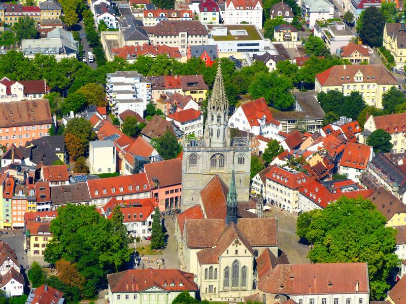 We vliegen over de Bodensee richting Konstanz.....juist, de plek waar de Rijn de Bodensee verlaat.