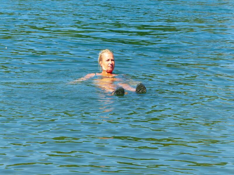 Tenslotte komen we aan in Basel. Heerlijk even afkoelen in de Rijn. Dat doen we bij Rhine bath Breite.