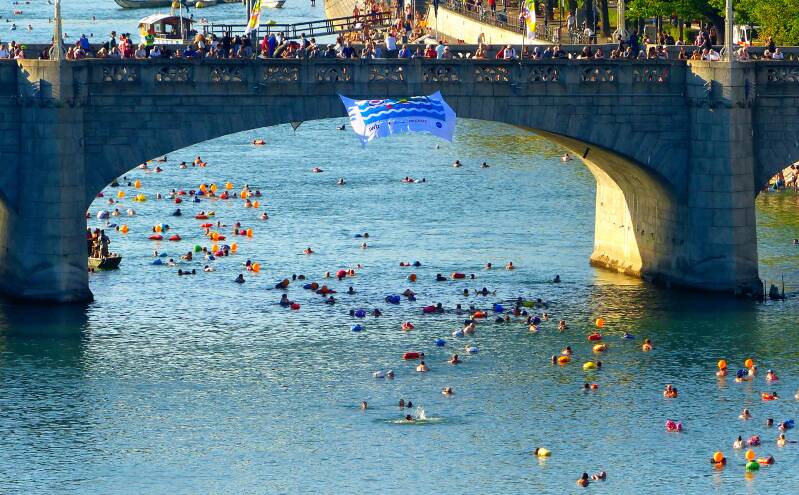 's Avonds vindt in Basel de traditionele Bazelse Rijnzwemmen plaats met ongeveer 4.500 deelnemers.