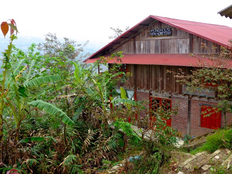 De H'mong House Homestay heeft de zaken goed voor elkaar. Een mooie grote ontvangsruimte waarin ook gegeten wordt. Wij hebben buiten een mooie bungelow met toilet en douche. Een paar meter verder ziet het leven er heel anders uit.
