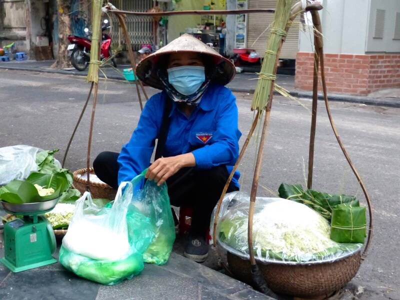 Zo vroeg in de ochtend door Hanoi te lopen, levert ook nog een paar mooie plaatjes op. De kerk is de katholieke kerk gebouwd in de Franse tijd. Natuurlijk ook nog even ontbeten in de stad. Noodle soep, van de beste restaurant in Hanoi (volgens onze tour guide). Op dit vroege tijdstip zijn de eerste mensen ook al weer aanwezig om food te verkopen.