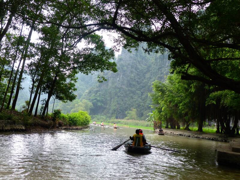 De Ngo Dong-rivier is een kronkelige fantastische rivier die je door de aaneengesloten bergkam van karstbergen en de ongelooflijk ongelooflijke Tam Coc (Drie Grotten) i leidt. Het bewonderen van de rivier en het omliggende natuurlijke landschap was een mooie ervaring. Een betoverend landschap, die we later ook nog vanaf boven naar beneden gaan bewonderen.