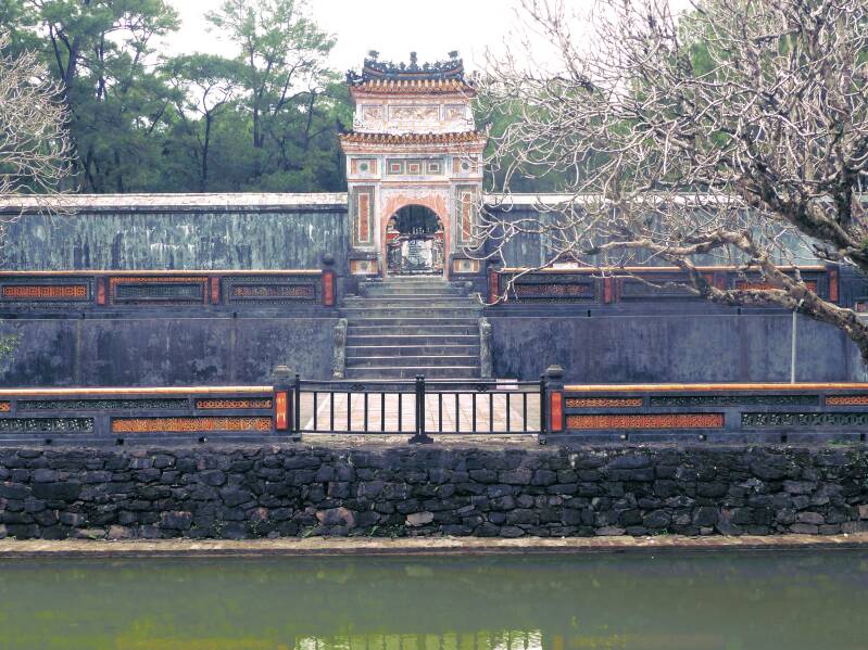 De begraafplaats Tu Duc wordt omringd door een muur. De ingang is de Vu-Khiempoort. Van hier loopt een pad langs het Luu-Khiemmeer naar Du Khiem, de voormalige aanlegplaats voor boten. Het meertje is met de hand uitgegraven en met het gewonnen zand heeft men in het meer het eiland Tinh Khieu opgeworpen.