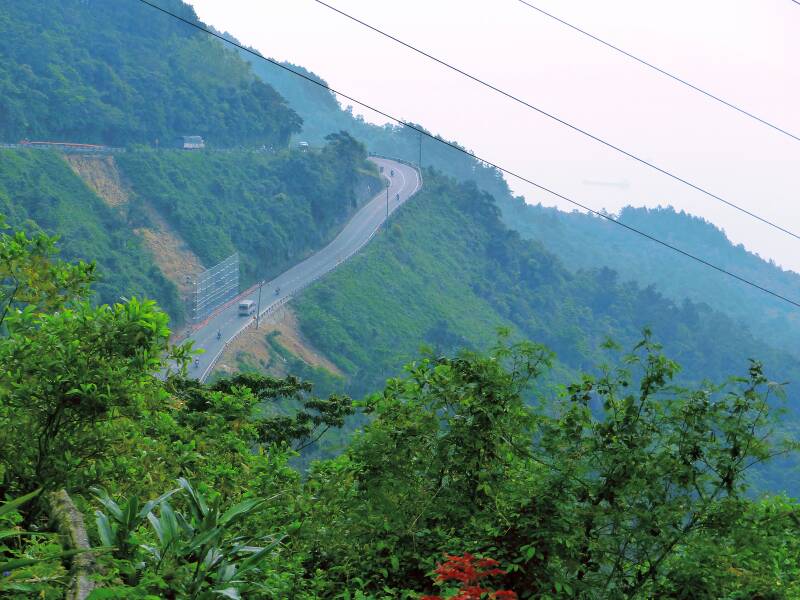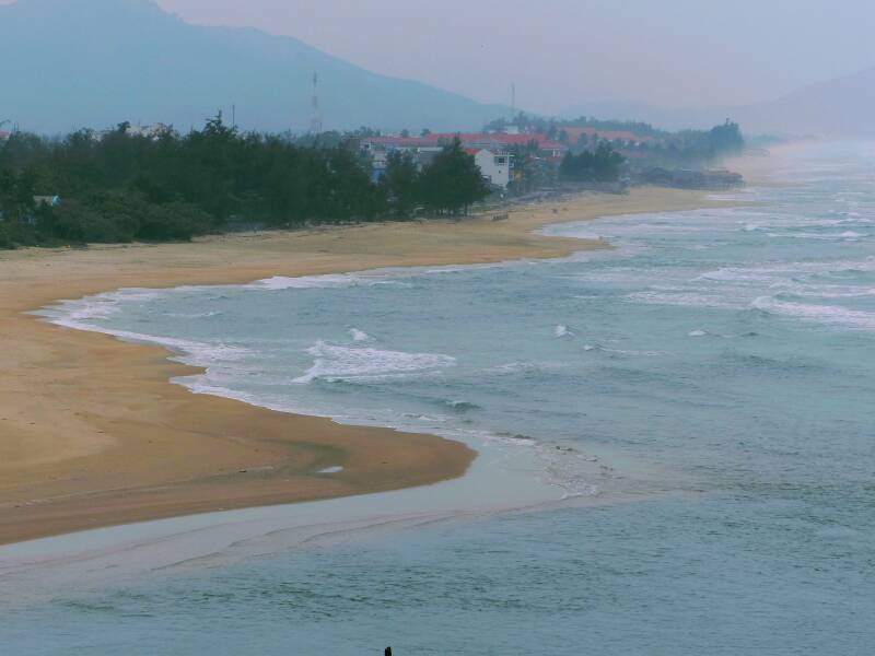 De plek waar het zeewater de lagune in stroomt, gaan we klimmen met de auto. Hier start de Hai Van Pass. De uitzichten onderweg zijn mooi, maar niet spectaculair. De Hai Van Pass is 21 kilometer lang. Bij de daling zien we af en toe kilometers verlaten strand.