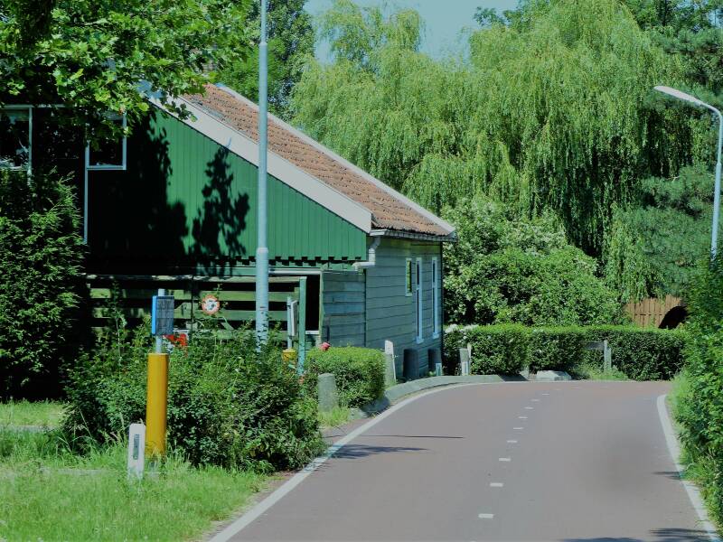 Als we Wormer uit lopen, kiezen we ervoor om onze wandeling voort te zetten via de aan -en aftakroute via de Zaanse Schans. We wandelen door het schilderachtige Bartelsluis. Een buurtje met alleen houten huisjes.