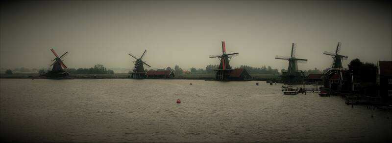 En dan zien we de molens. We bereiken de Zaanse Schans. De geuren van cacao komen ons tegemoet. Een warme wandeling komt ten einde.