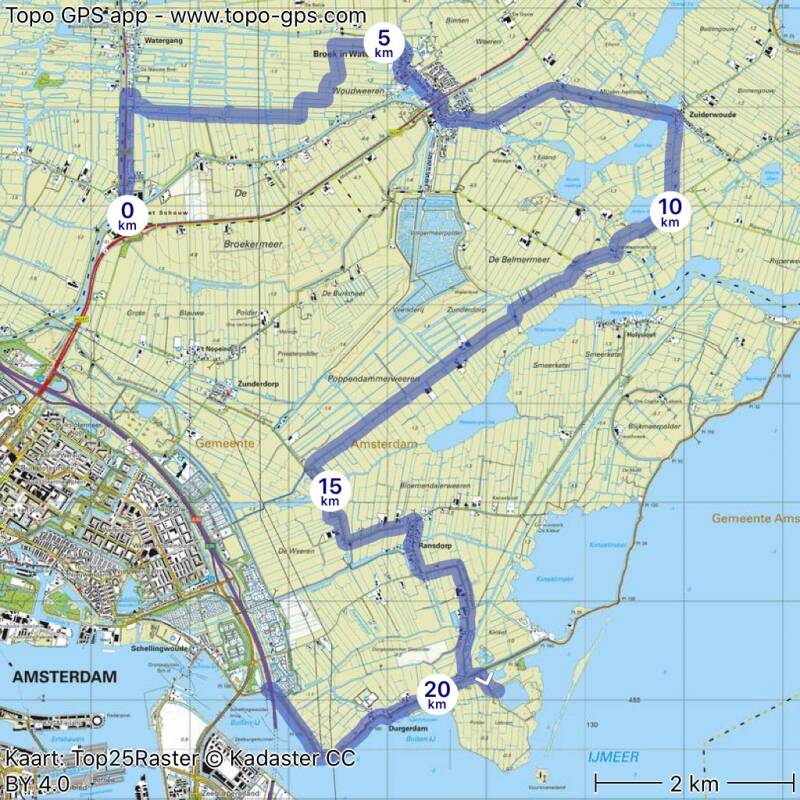 Na Broekland volgt Zuiderwolde. Een nog kleiner dorpje, maar wat een mooie (witte) brug. Dan is het even stevig doorlopen en komen we aan in Ransdorp. Ook hier woonde veel kapiteins in de Gouden Eeuw. In de 80 jarige oorlog werd Ransdorp verwoest. Ransdorp 'verplattelandiseerde' in die tijd. Het is een heel klein dorp net onder de rook van Amsterdam. In Ransdop wandelen we onze eerste honderd kilometer van het Trekvogelpad.
