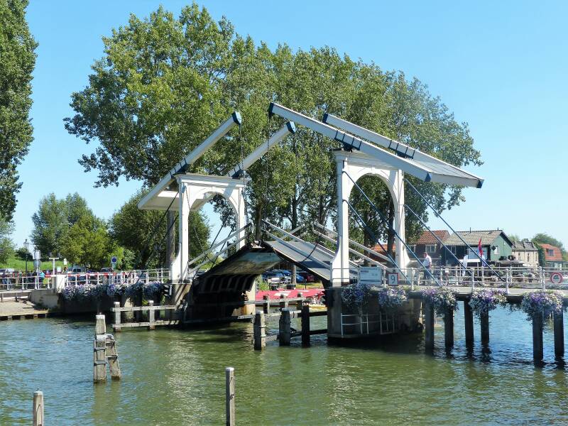 Het bruggeld wordt geïnt. En een fietsje (met schelpen) wordt uit het water gevist. En wel een heel bijzondere boot op het water in Weesp.