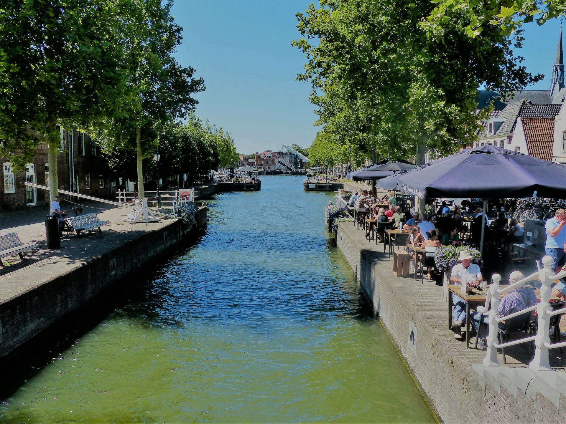 Na het verlaten van Driemond steken we (wederom) het Amsterdam-Rijn kanaal over. We naderen Weesp. Een prachtig dorpje met grachtjes, geveltjes en molentjes. Een hoogtepunt van deze etappe. Het is er heerlijk. Veel mogelijkheden om te drinken en te eten. Wij nemen een lekkere lunch voordat wij aan het tweede deel van deze etappe starten.