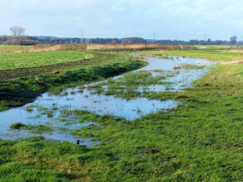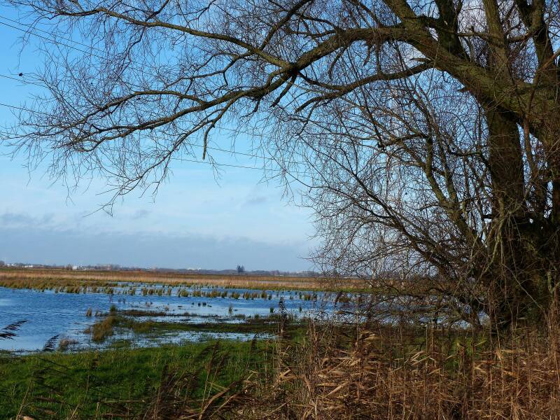 We wandelen 4 KM langs deze rivier alvorens wij door de Binnenveldse Hooilanden wandelen. Een mooi gebied. De vogels zijn van grote afstand zichtbaar. Delen van deze Hooilanden staan onder water. Een prachtig gezicht. In de verte zinnen we ook nog wild, veel wild zelfs.