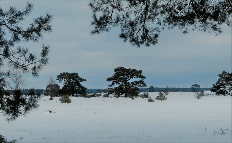 Het Pampelse zand is een enorm uitgestrekte vlakte met duinen, zand en een enkele boom. Je kunt kijken tot aan de horizon en dan nog zie je de Pampelse vlakte. Zonder sneeuw is dat mooi, maar met sneeuw zeker zo mooi.
