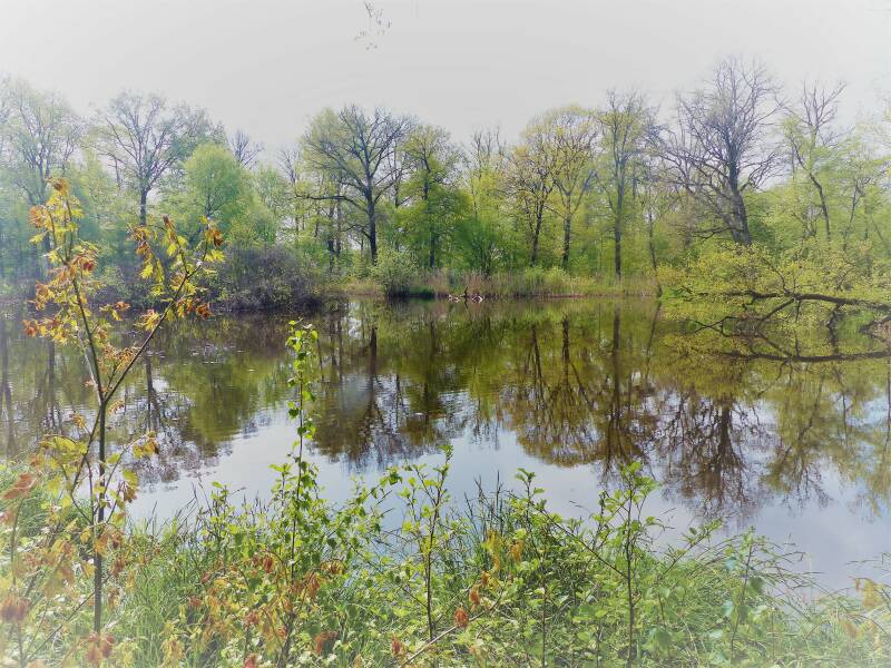 Wat verder opvalt is de rust en de gefluit van de vogels. Gedurende de hele etappe is het geluid van de vogels aanwezig. Bij het water dat we passeren horen we luid en duidelijk de kikkers.